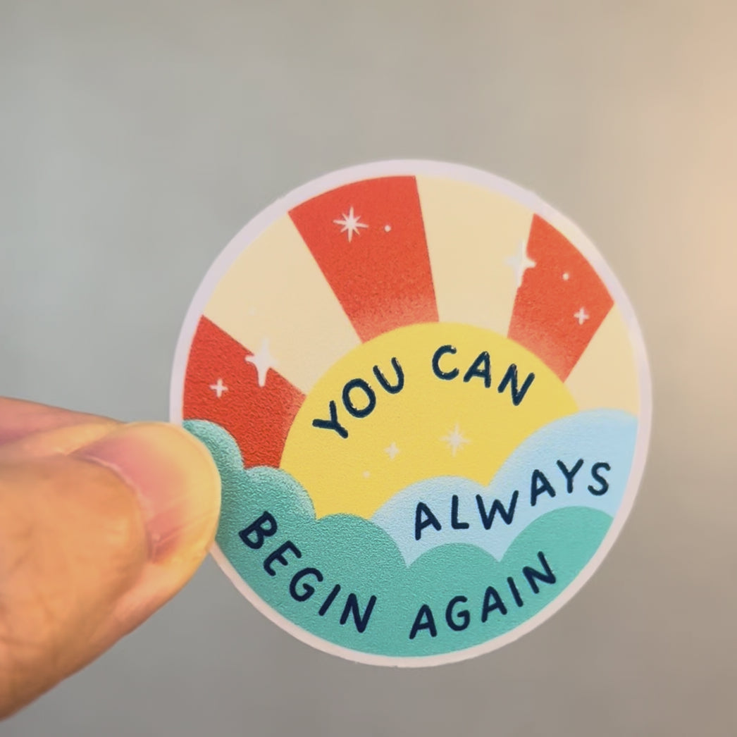 The Begin Again sticker, with a glowing sunrise illustration, is a gentle reminder that it’s never too late to start over. Every moment offers a chance to choose differently, grow, and move forward.