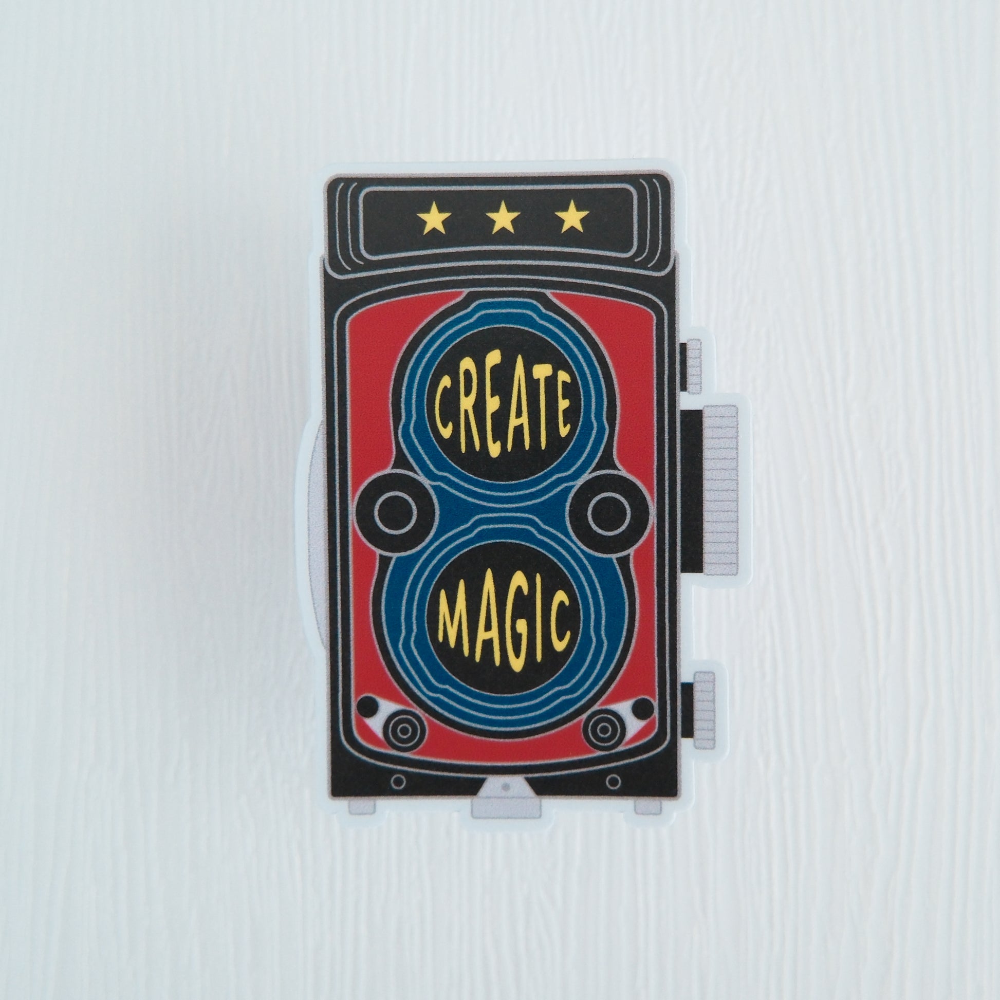 The Rolleiflex, a classic twin-lens camera first made in 1929, was celebrated for capturing moments with clarity and beauty. Like this iconic camera, the Create Magic sticker reminds you that magic is hidden in the ordinary — but only if you look with curious eyes and intention.